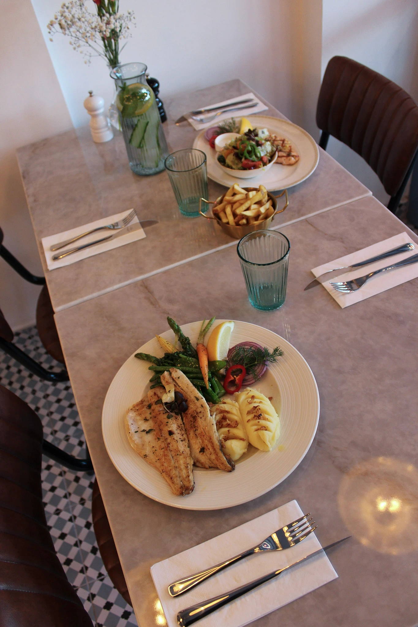 Explore moments from our restaurant — from beautifully prepared Mediterranean seafood dishes to the warm and elegant dining atmosphere our guests enjoy every day.